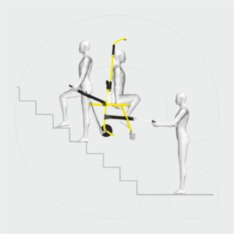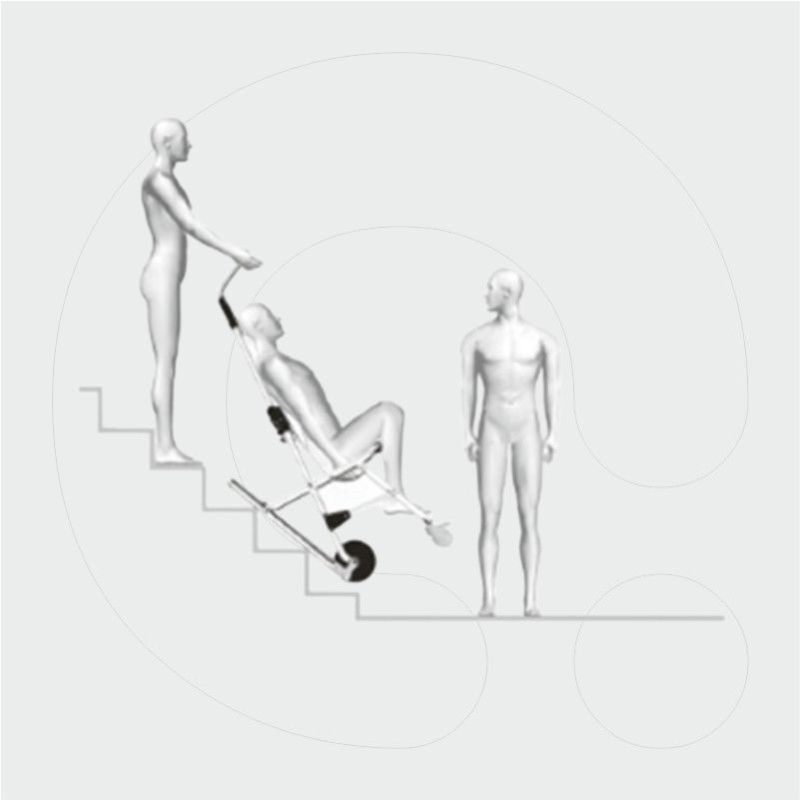 SKID-OK is a stair chair designed to evacuate people with mobility limitations during an emergency, when lifts are unavailable or out of service. Complying with the EU MDR, this chair provides a smooth, quick and safe evacuation for both the patient and the operator. Two self-braking tracks, an extendable handhold and a robust but lightweight frame offer stability and control during stairway descent operations.