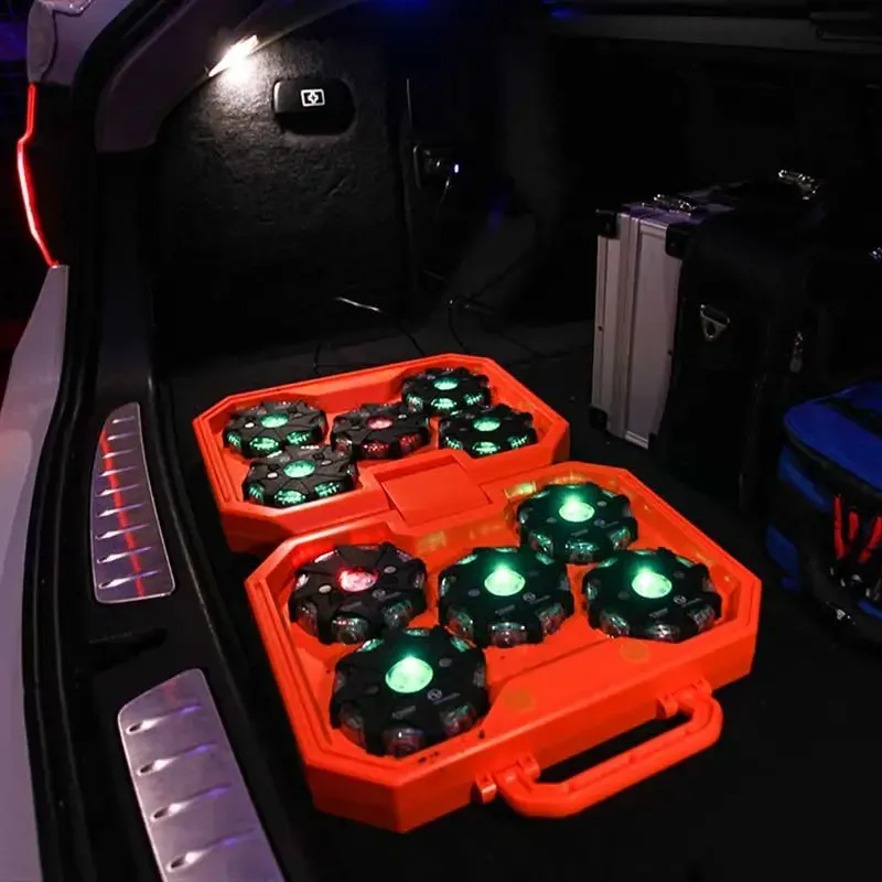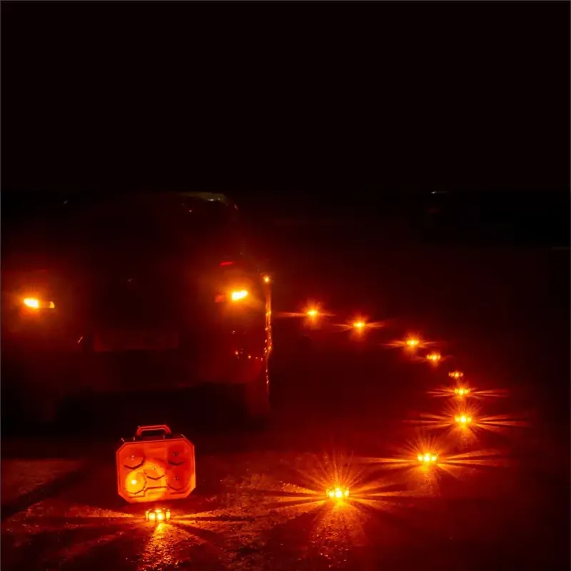 Introducing the Pulsar NavStar, a set of 10 fast deployment hazard warning lights. With a durable polymer carry case, these lights stay fully charged and organized while on the go. A 360-degree illumination zone and vertical beam offer safety and visibility from over 1 kilometre away, perfect for emergency services and aerial operations. Choose from 6 flashing modes and 3 light colours with simple two-button operation.