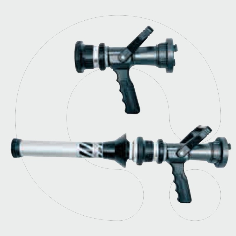 The TURBOMATIC branch is used for extinguishing fire with jet, shower, shower-curtain and foam. The use of foam requires mounting an extension on the branch.