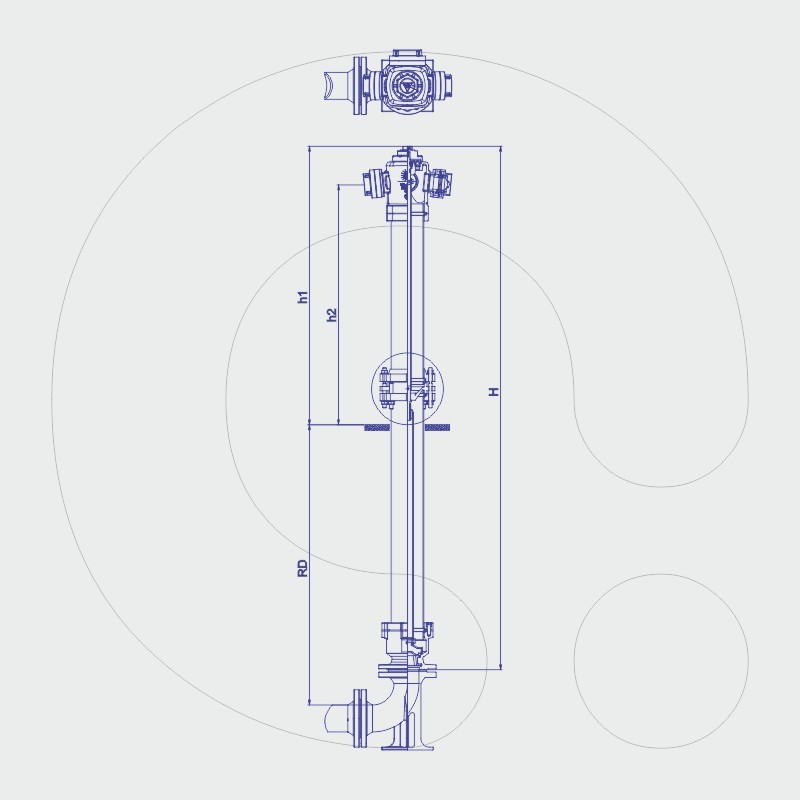 | DN | Lidhëset - dalja | RD | H [mm] | h1 [mm] | h2 [mm] | Pesha [kg] | Nr. artikullit |